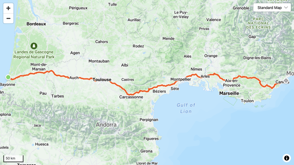 The aim? To raise funds and awareness for Cancer My Arse, an initiative dedicated to supporting cancer research and patient care in the UK and locally here in France. It’s a journey that’s as inspiring as it is challenging, and we couldn’t be more proud to be supporting John every step (or pedal!) of the way.